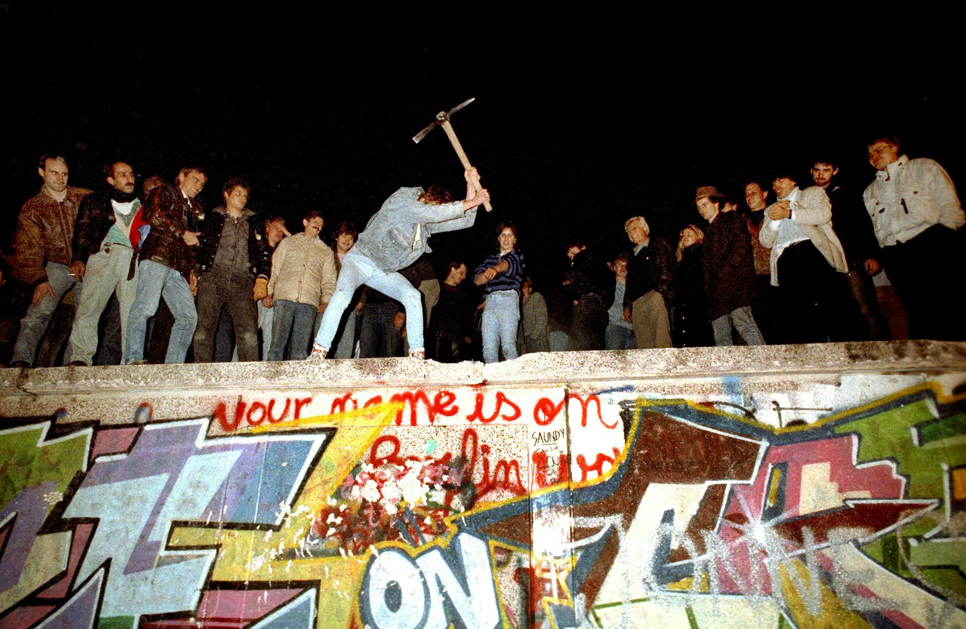 Pludselig er der fri passage. Øst og vest er genforenet og billeder af jubel, glædestårer, champagnebrus og kædedans og folk, der hakker muren i stykker, strømmer ud gennem TV-skærme over hele Europa. Et Europa på vej til at blive hel igen.