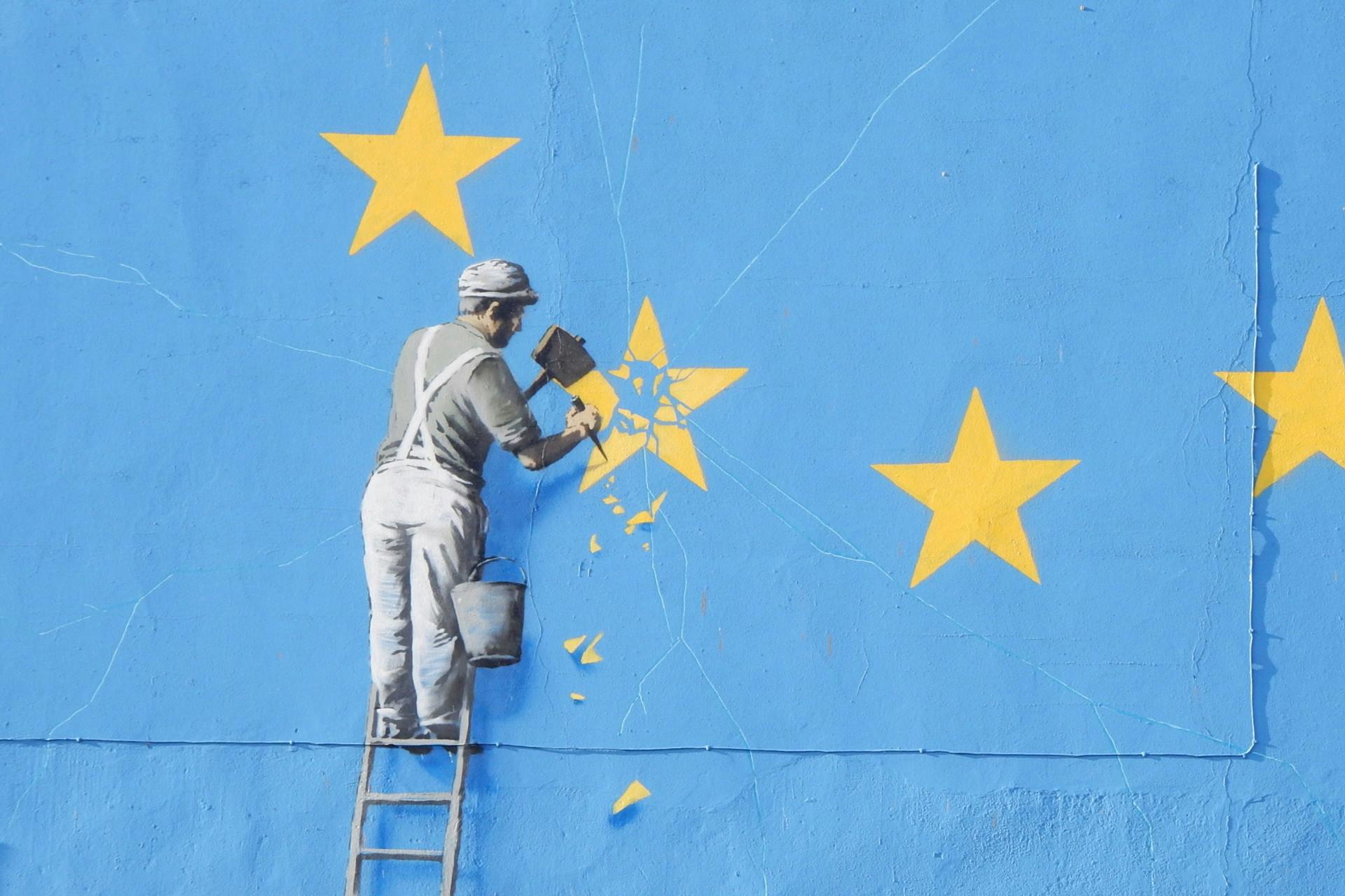 (Baggrundsbillede af street art-kunstneren Banksys kommentar til Brexit, altså Storbrittaniens udmeldelse af EU: Paul Bissegger via Wikimedia Commons. Find de samlede kilder til denne case HER.)