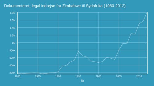 Den eneste officielle grænseovergang mellem Sydafrika og Zimbabwe går via Beitbroen, da de to lande er adskilt af Limpopofloden. Alle, der ikke har et pas, må finde en anden vej. Det har Vimbai ikke, så hendes rejse mod Sydafrika fra Zimbabwe begyndte i hendes hjemby Masvingo, 250 kilometer fra Beitbroen. Sammen med en gruppe kvinder tog hun en minibus fra Masvingo til grænsen, hvor de fandt en mandlig guide, som før - mod betaling - havde hjulpet dem ind i Sydafrika. Uden en guide, der kender ruterne i grænselandet, er man som kvinde ekstra udsat i mørket, hvor voldelige røvere er på jagt efter lette ofre. Flokken begyndte turen, da mørket faldt på. Vimbai kunne ikke se ret langt for sig, men hendes bare fodsåler fortalte hende, at de passerede forbi fugtige marker og tørre jordområder. De gik i tavshed, men der var ikke stille. Cikaderne lagde et konstant lydspor, og da de nærmede sig Limpopofloden stemte kassinafrøerne i. Guiden gennede dem ud i floden et sted, hvor den ikke var for dyb, og strømmen ikke så stærk. De løftede deres tasker op over hovedet, og bevægede sig ud i vandet en efter en. Vimbai prøvede ikke at tænke på krokodillerne, der efter sigende er mere aktive om natten, mens hun vadede gennem floden med lange målrettede skridt og blikket fast fokuseret mod den modsatte bred. Lettelsen var til at føle på, da hun og de andre kvinder nåde den. Så langt, så godt. Næste forhindring - grænsehegnet. Med hinandens hjælp og guidens bidetang kom de igennem de tre grænsehegn, dog ikke uden ridser fra de barberbladslignende pigge, grænsehegnet er beklædt med. Men adrenalinniveauet hos Vimbai og de andre kvinder var så højt, at de knap nok ænsede det. Derefter var der kun nogle få timers nattevandring til Musina foran dem.
