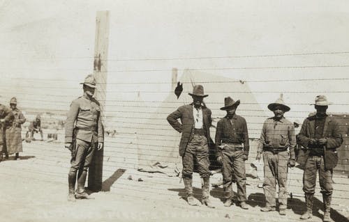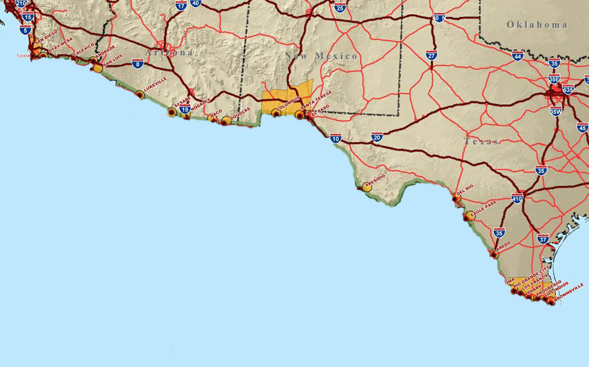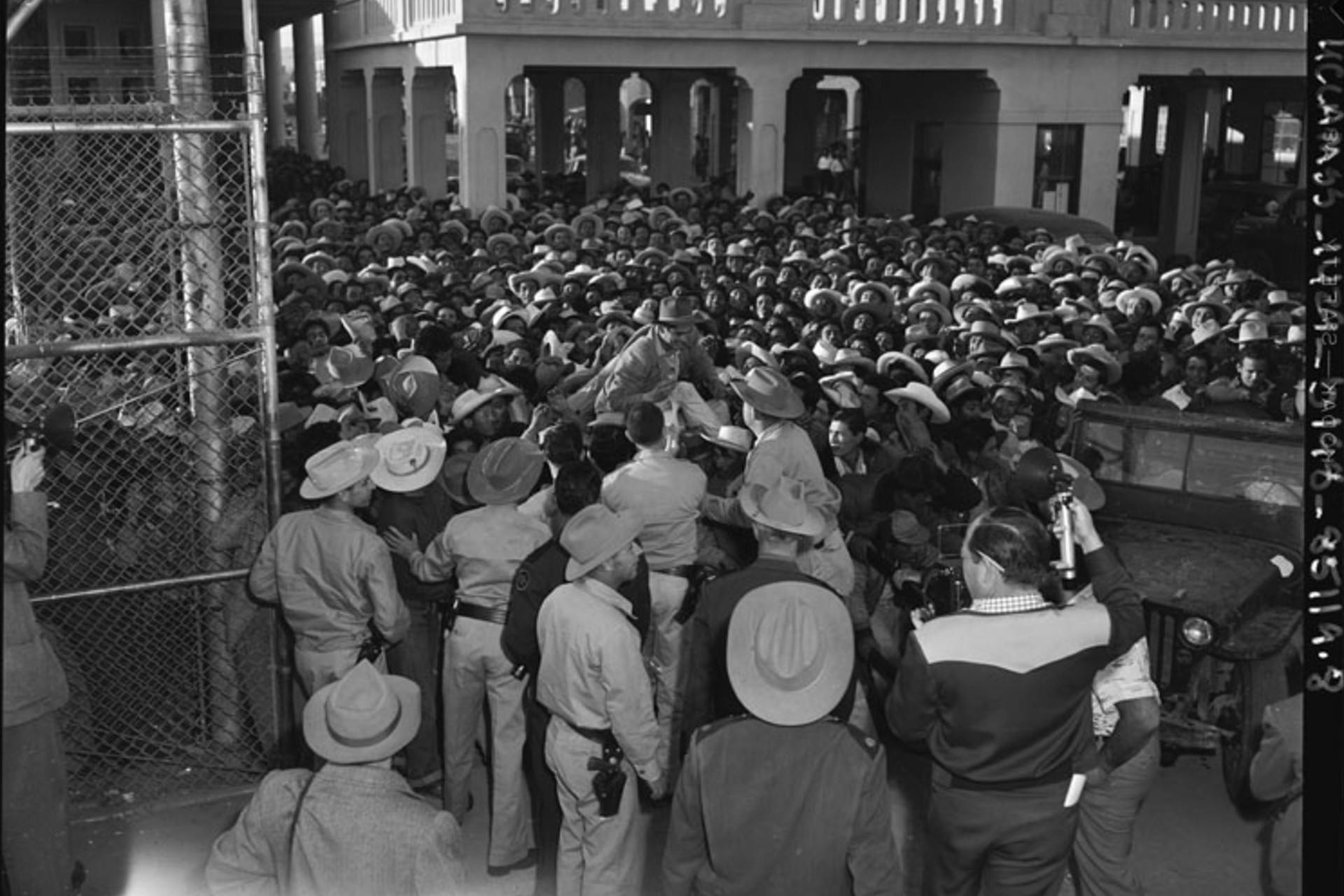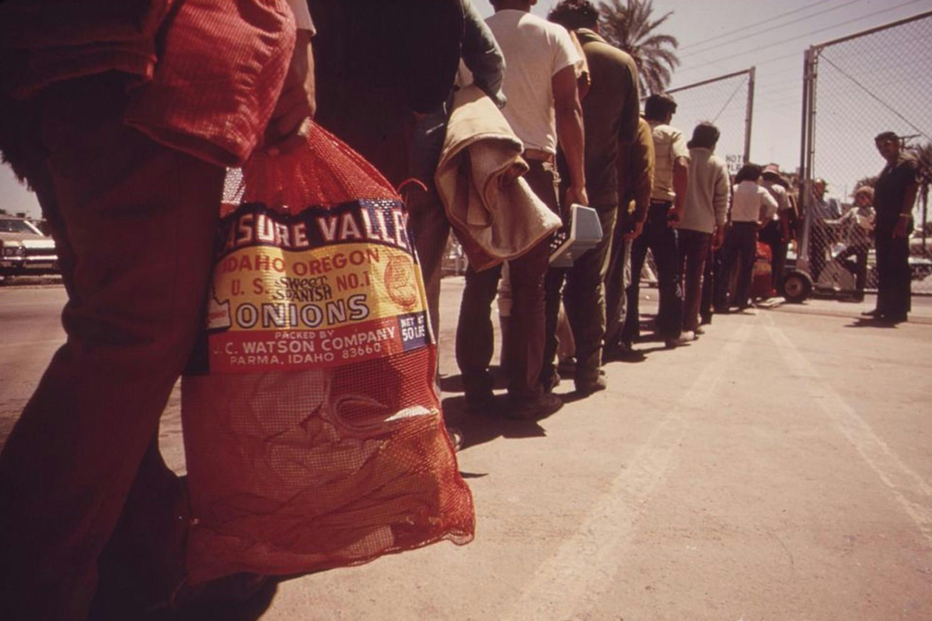(Baggrundsfotoet er taget af Charles O'Rear den 1. maj 1972 og viser en kø af landarbejdere, der er blevet fanget af grænsekontrollen ved Calexico efter at have indvandret ulovligt til USA). Kilde: The U.S. National Archives via Flickr)
