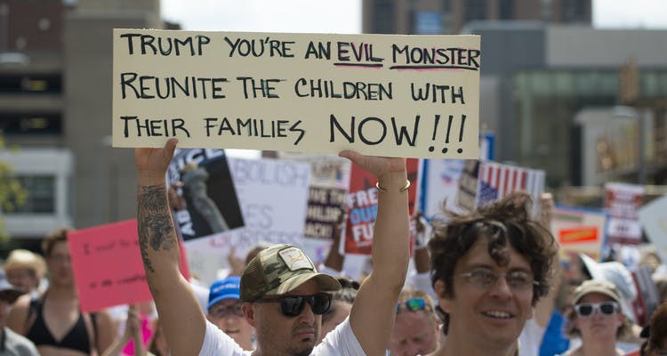 Demonstration i Minneapolis i juni 2018 mod præsident Trumps stramninger af den amerikanske immigrationslov, der blandt andet betød, at børn blev adskilt fra deres forældre ved grænsen. Foto: Fibonacci Blue via Flickr.